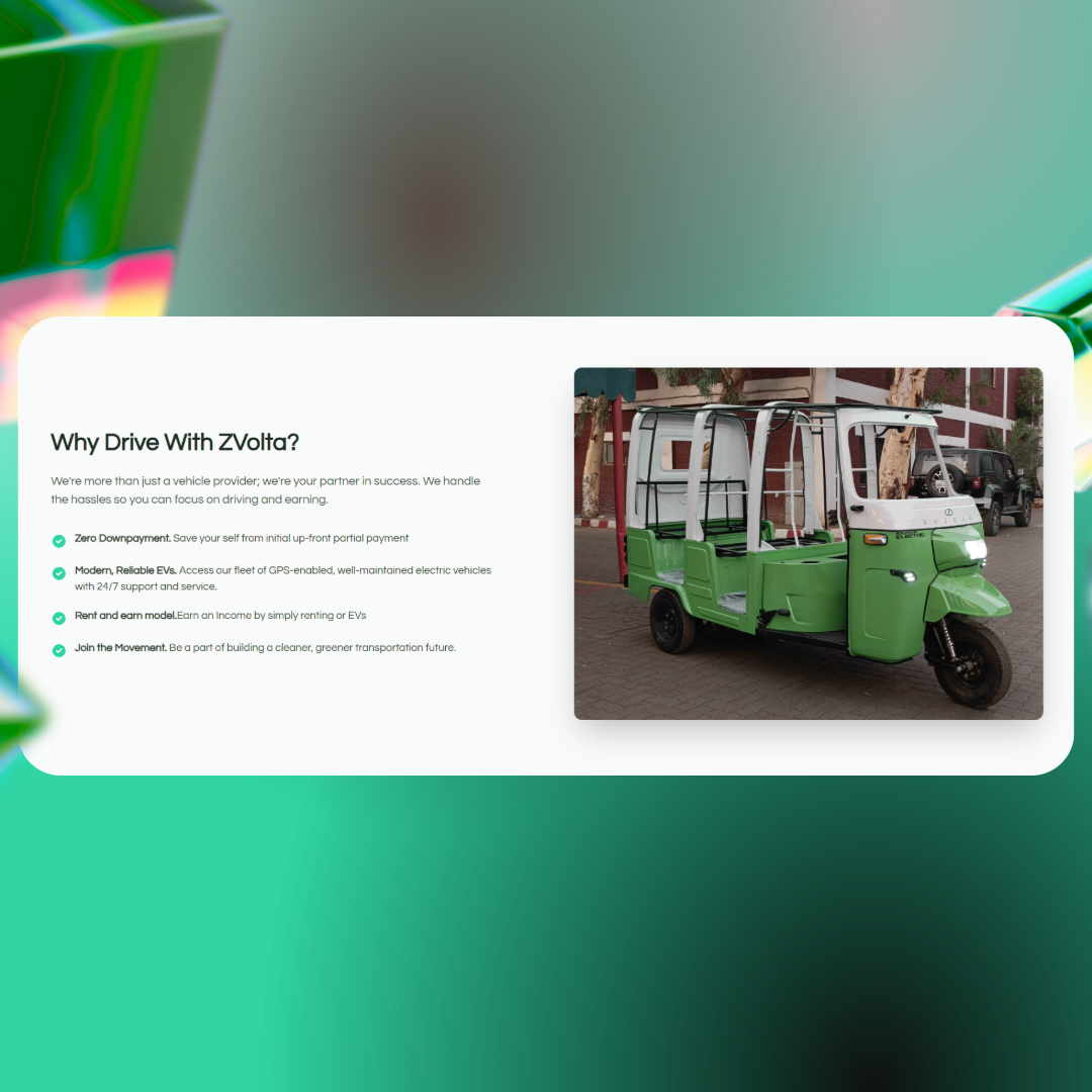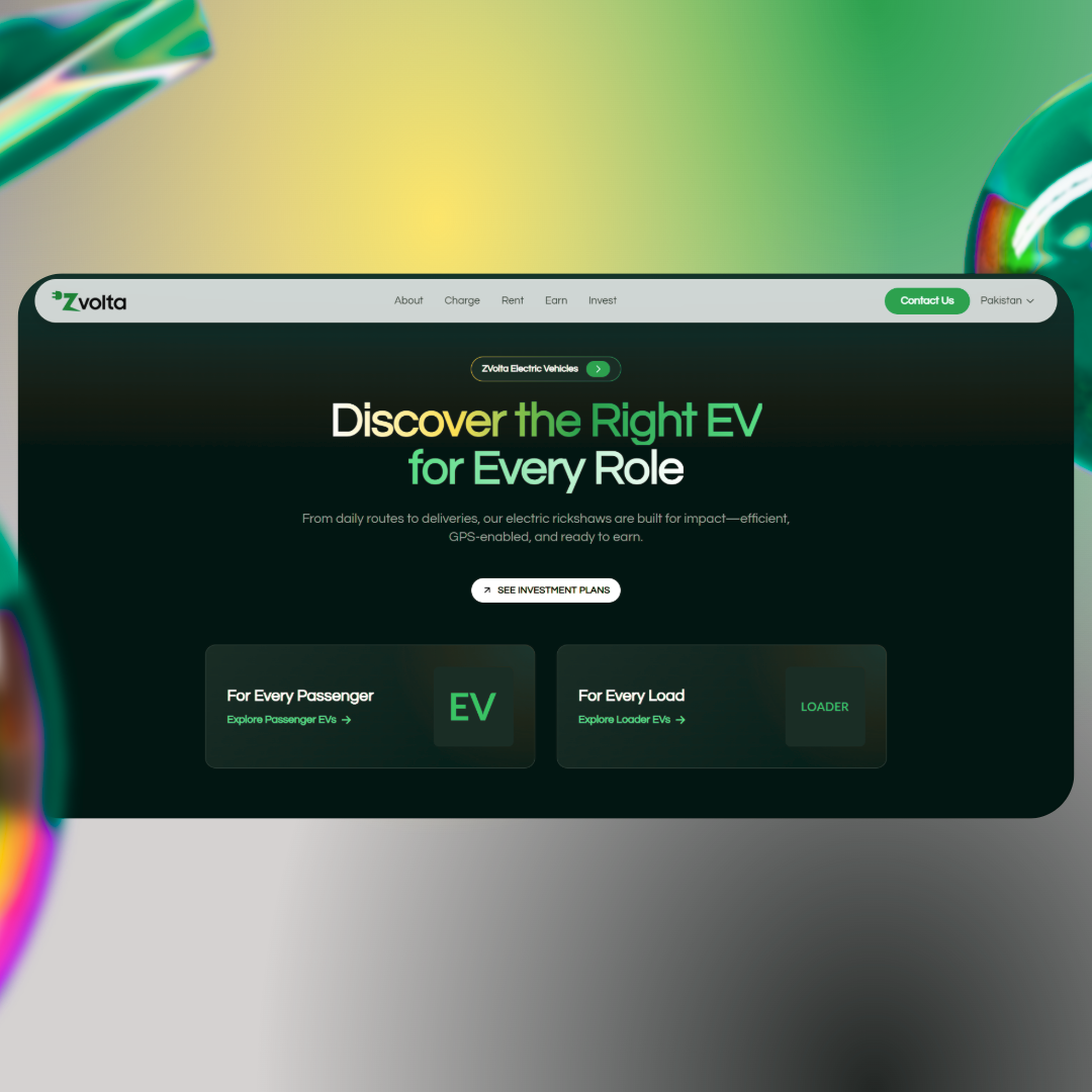 ZVolta is an innovative EV rickshaw brand reshaping sustainable transportation in Pakistan. They needed a website that matched their mission—futuristic, clean, and built for scale.