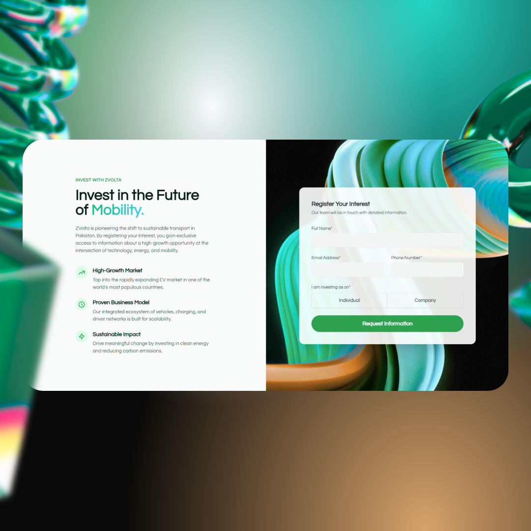 The result was a visually impactful, high-performance site that positions ZVolta as a modern leader in the electric mobility space—ready to attract investors, partners, and eco-conscious customers alike.
